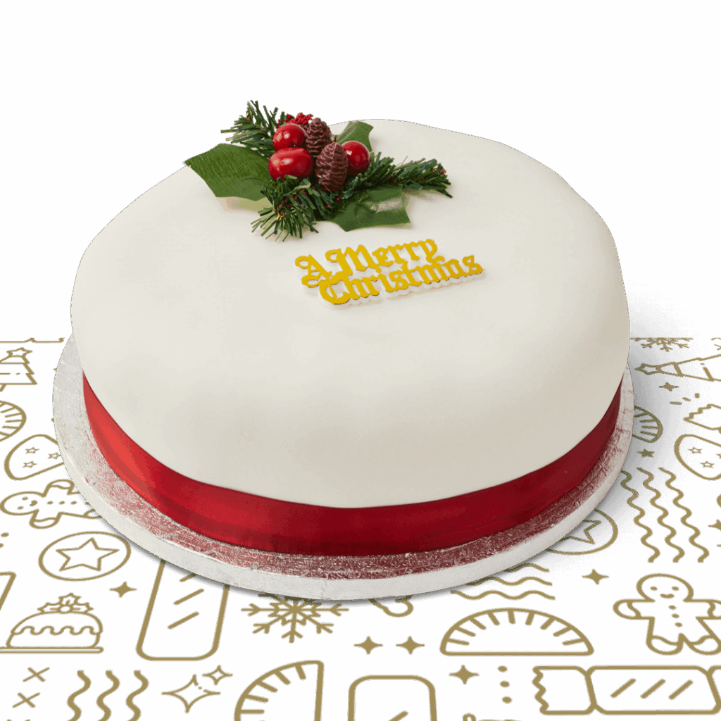 Our classic rich fruit cake made with the same recipe as the Father Christmas version. Rum infused fruits, warm spices, almonds and cherries, all topped with marzipan and icing. A perfect choice if you want something elegant and timeless for the Christmas table.