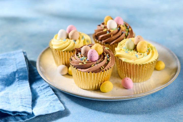 Vanilla sponge hand piped with vanilla flavoured buttercream and chocolate eggs.
